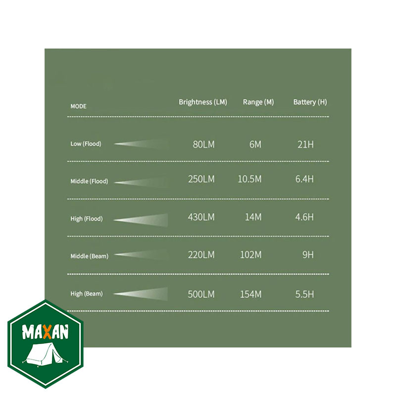 - میزان نوردهی نور متمرکز در حالت زیاد: (500 لومن 154 متر 5.5 ساعت)