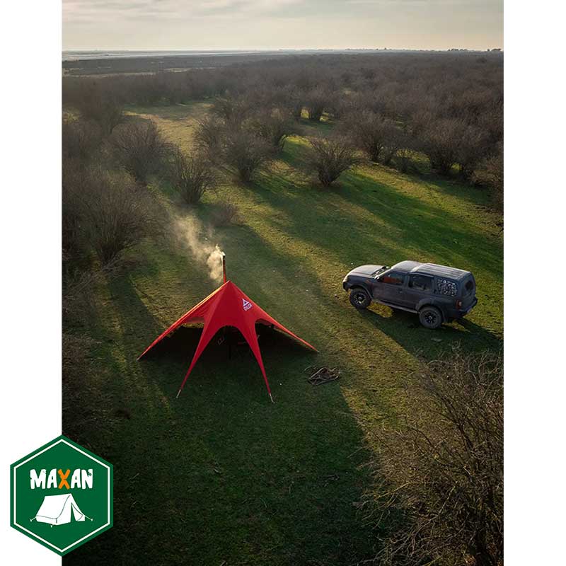این سایبان بهخوبی امکان استفاده از بخاری هیزمی و خروج دود به بیرون را فراهم کرده و برای کمپینگ در فصول سرد، گزینهای ایدهآل است.