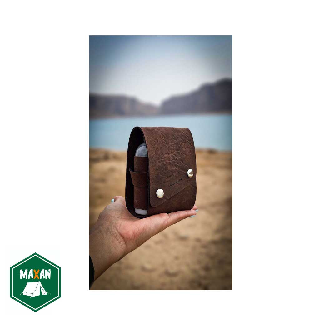 • بطری پلاستیکی به همراه در بدون نشتی و دارای کاور چرم وگان (مصنوعی)